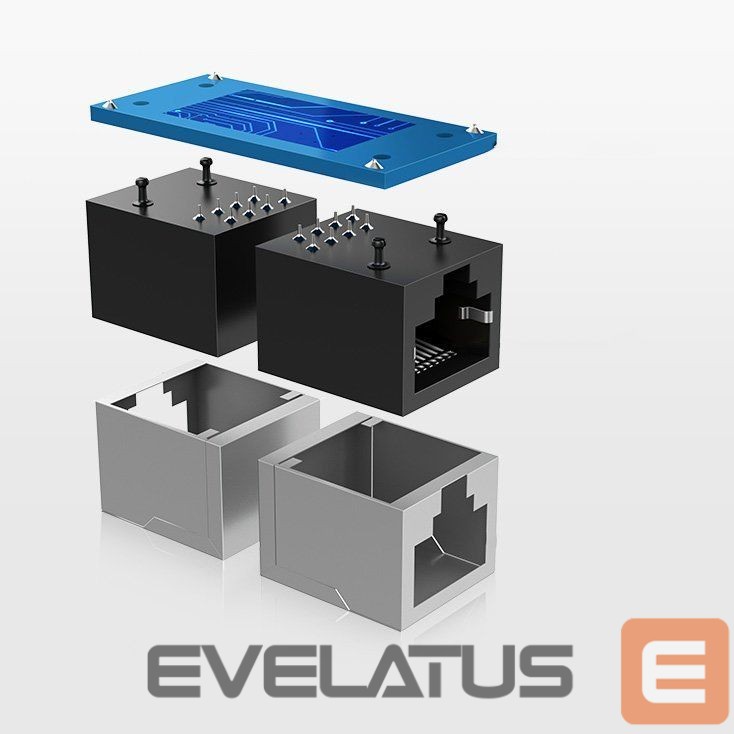 The RJ45 line coupler meets the parameters of category 6 in accordance with the TIA / EIA 568-C.2 standard. It is RoHS compliant.