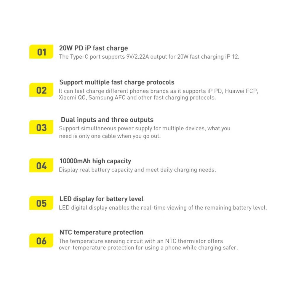 Baseus Bipow fast charging power bank 10000mAh 20W white (Overseas Edition) + USB-A – Micro USB cable 0.25m white (PPBD050502)