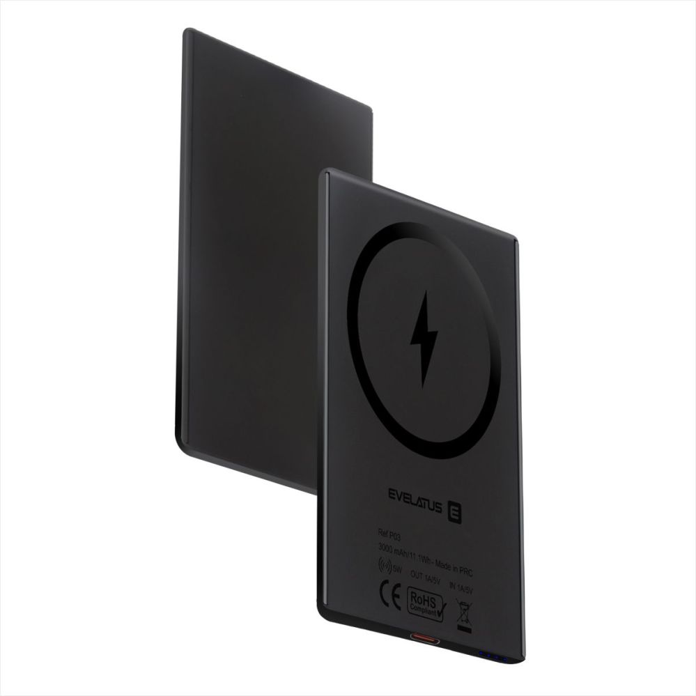Väline aku Evelatus Evelatus 3000mAh Power Bank Super Slim With Wireless charging EVEP03PBSSB Black