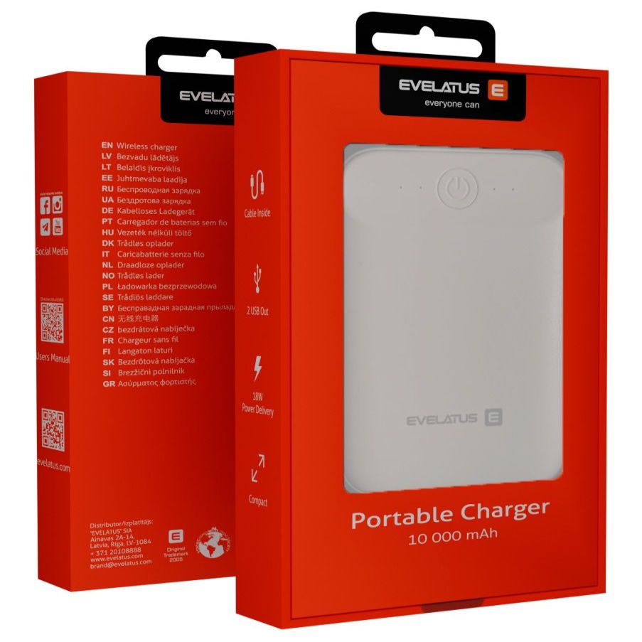 Väline aku Evelatus – Evelatus Power Bank EPB07 10000 mAh White