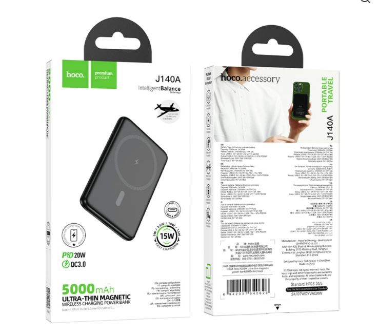 Väline aku Hoco J140A Tony PD20W ultra-thin magnetic power bank(5000mAh) Black