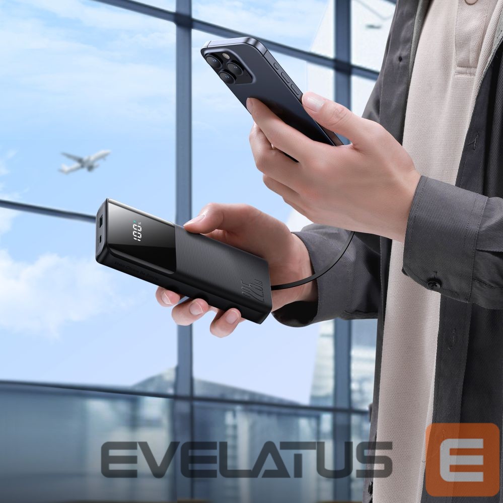 Two built-in cables eliminate the need to carry additional cables. Compatibility with Apple and Android devices makes the power bank ready for use in any situation.