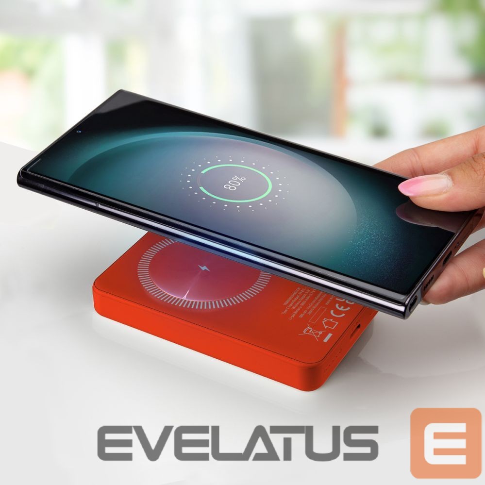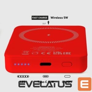 Discover the power and convenience of the SBS TEBB5000MAG1CR 5000 mAh power bank. This stylish, red power bank combines modern MagSafe technology with the versatility of wireless charging. Ideal for iPhone and Android smartphone users, it allows you to easily and quickly charge your devices, without cables. Thanks to its compact design and lightweight housing, you can always have it with you – in your bag, backpack or pocket. Integrated LEDs allow you to track the charge status, and the USB-C port ensures fast charging of devices with a cable. It is not only functional, but also a safe solution that will work well at home, at work and on the go.