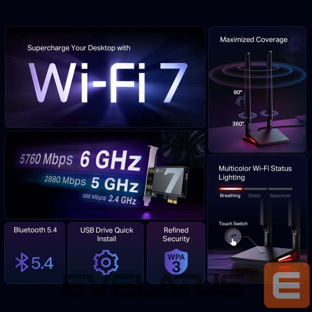 Võrgulülitid TP-Link WRL ADAPTER 9300MBPS WI-FI 7/ARCHER TBE550E