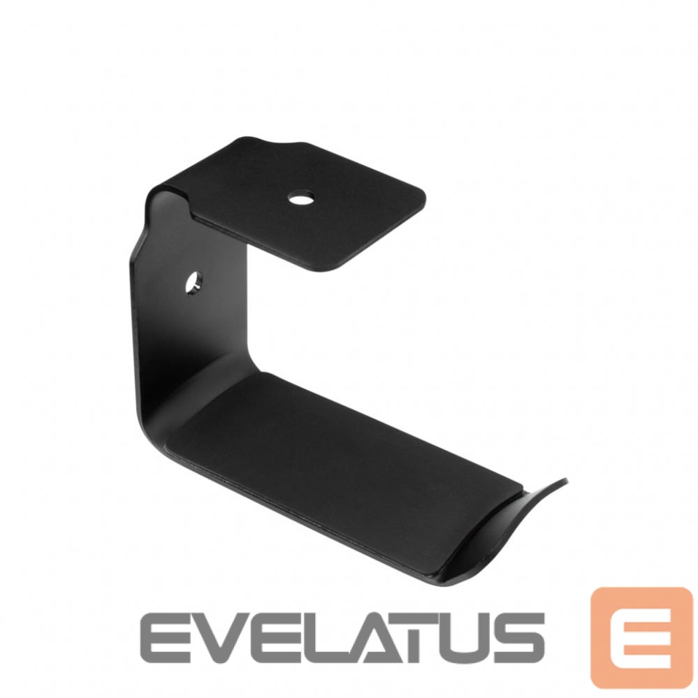 on lateral side of your desk (inside or outside) by 2 x 3M stickers or 1 x bolt. (in package)