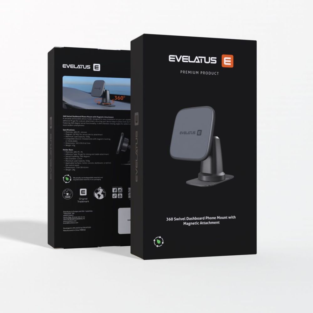 Auto holder Evelatus 360 Swivel adhesive mount with MagSafe C2+K8 Black