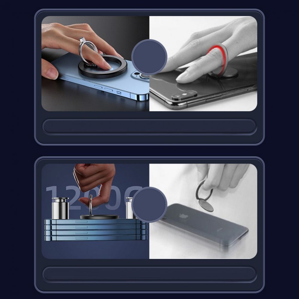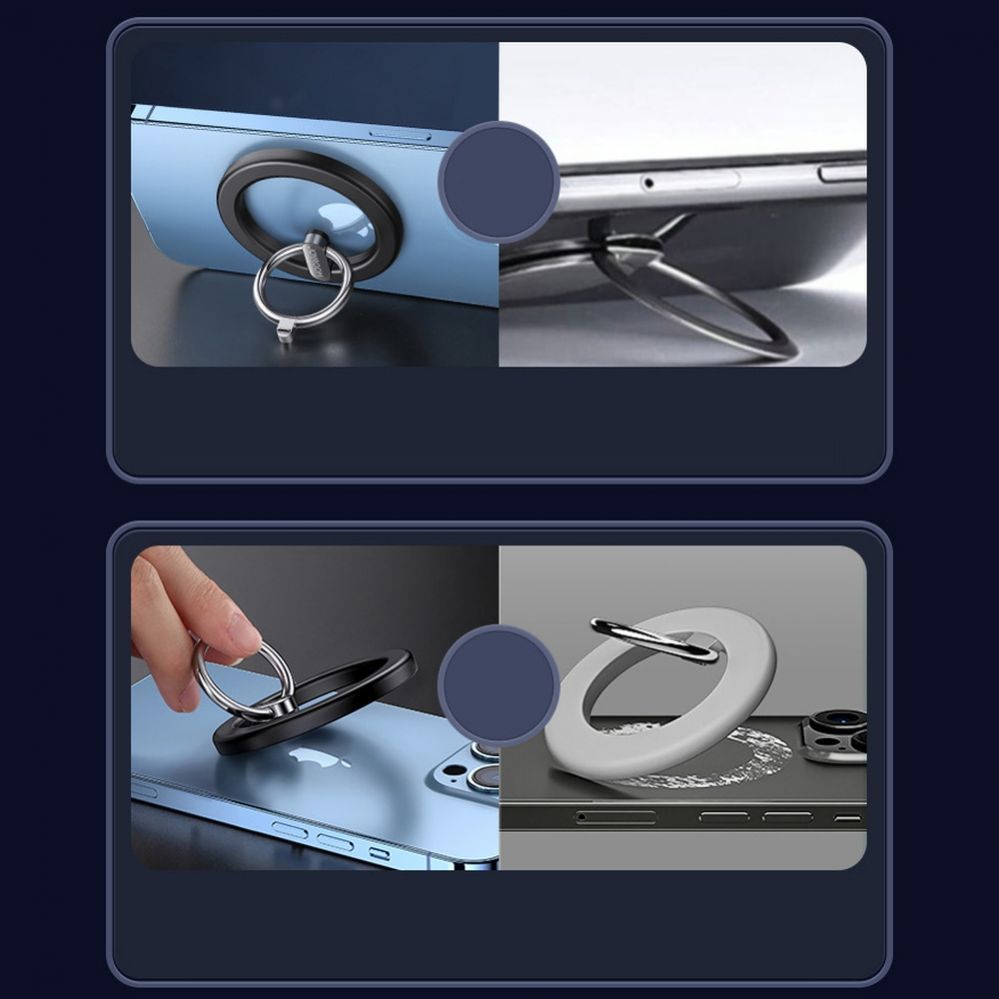 - sticking a metal overlay on the case without the MagSafe function, then attaching the ring to the case with the overlay glued on