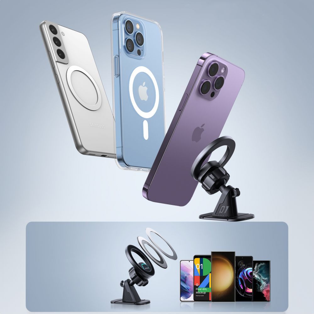 • Built-in 20 magnets : With 20 built-in magnets, Joyroom JR-ZS376 provides an extremely strong hold, allowing you to use the holder even for the largest phones. The set also includes a metal ring that makes the holder compatible with any phone model.