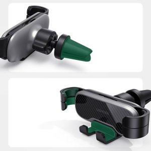 A gravitational car holder to be mounted on the car's ventilation grille. The gadget is extremely easy to use, just put the phone on it and the jaws will close automatically. It has a triangular structure ensuring stability while driving, large adjustment possibilities (including 360-degree rotation) and rubber pads, thanks to which we will not scratch the airflow. For this a special cutout that allows you to connect the charger.