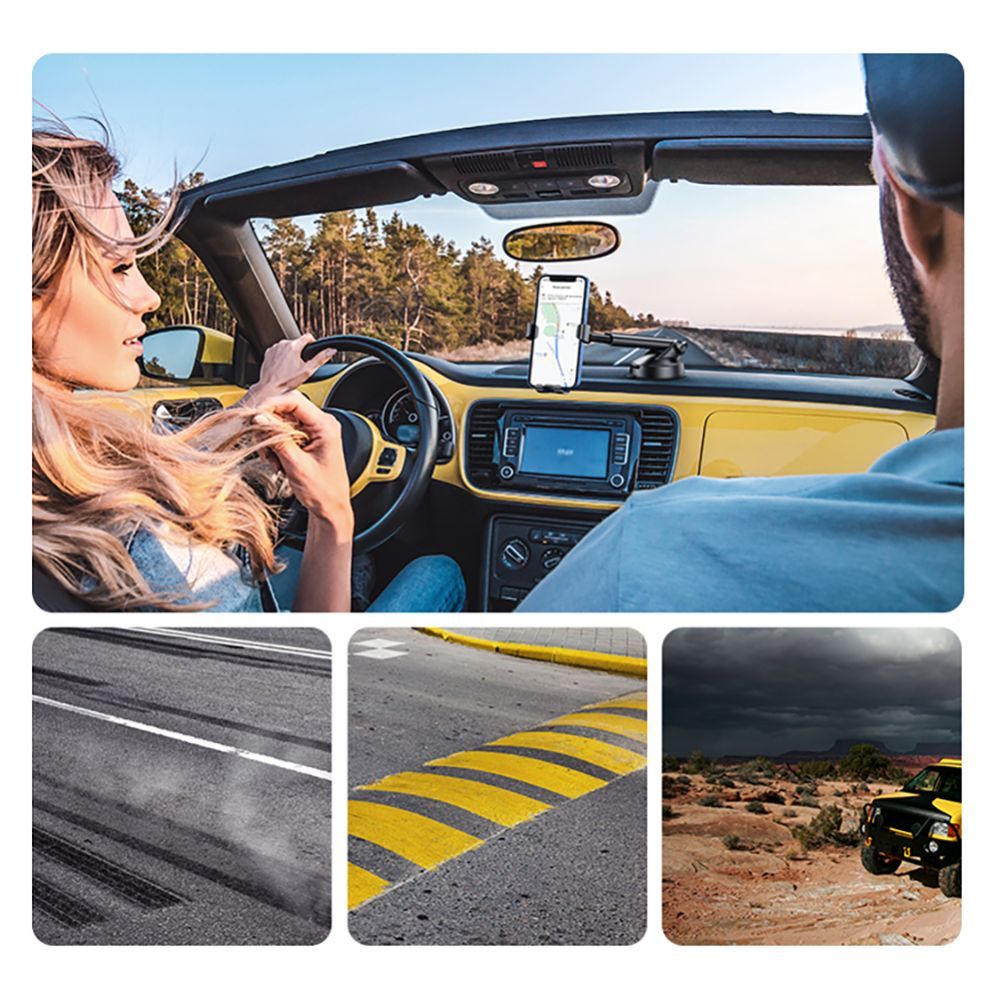 The dashboard-mounted car holder is a great gadget for car enthusiasts. It is incredibly easy to use, just put your phone on it and tighten the jaws to stabilize it in the selected position. The holder has a wide range of adjustment and rubber pads that will protect your phone from scratches.