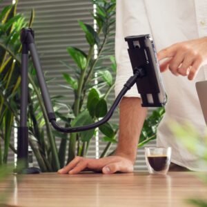 The Wozinsky WTHBK5 flexible phone or tablet holder is a good solution for your spine and neck . It features an ergonomic design based on two arms: one flexible, the other rigid. These arms allow you to freely adjust the holder 360 degrees – in any direction – to provide the best viewing angle. This helps relieve strain on your neck and shoulders.