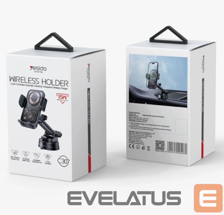 Auto holder yesido 15W Suction Cup Car Wireless Charging Holder Black