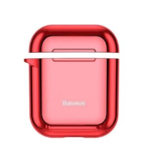 Back panel cover Baseus Metallic Shining Ultra-thin Silicone Protector Case with Hook for Airpods 1 / 2 Red