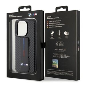 Back panel cover BMW BMW Grip Stand Smooth & Carbon case for iPhone 15 Pro – black