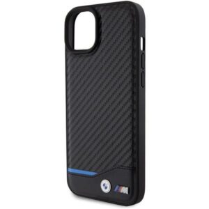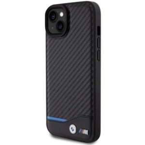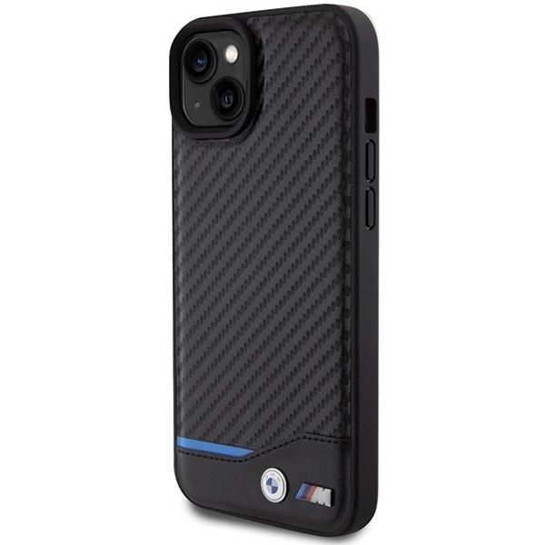 Back panel cover BMW BMW Leather Carbon case for iPhone 15 Plus – black