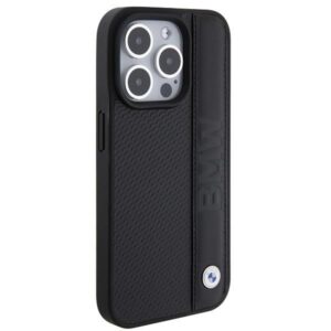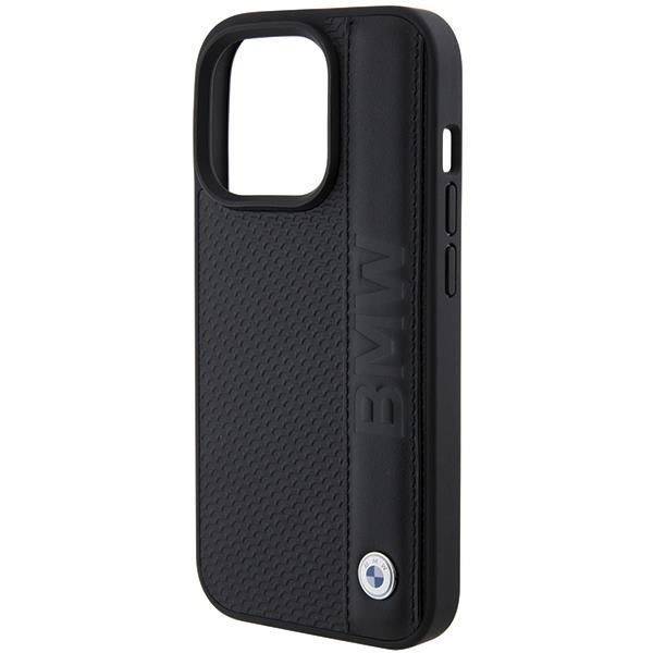 Back panel cover BMW BMW Leather Textured & Stripe case for iPhone 15 Pro – black