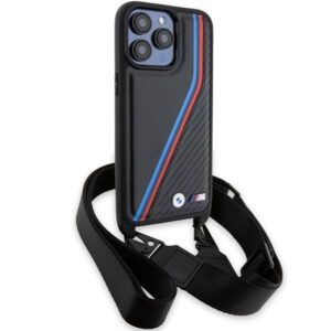 Back panel cover BMW BMW M Edition Carbon Tricolor Lines & Strap case for iPhone 15 Pro Max – black