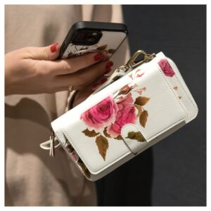 Back panel cover Evelatus Apple iPhone 15 Leather Case Zipper Design Flower White