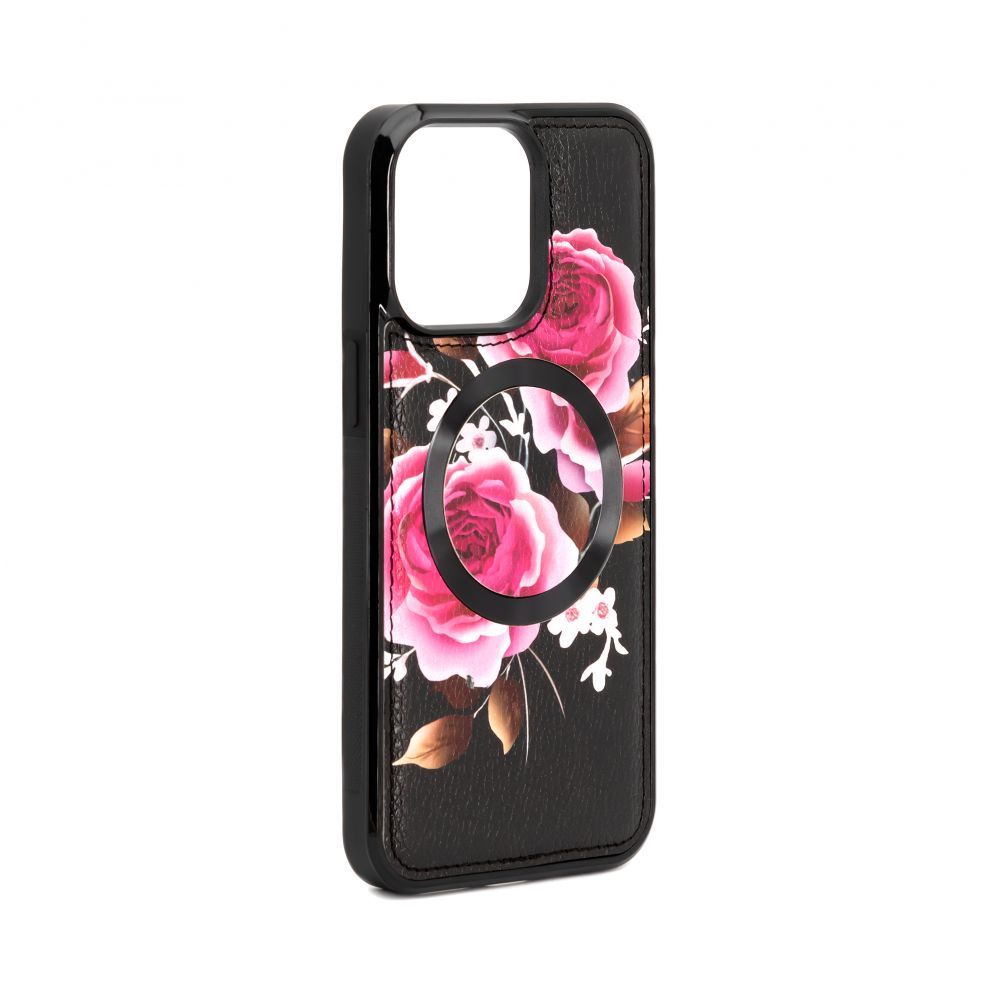Back panel cover Evelatus Apple iPhone 15 Pro Leather Case Zipper Design Flower Black