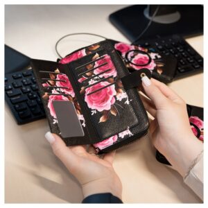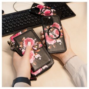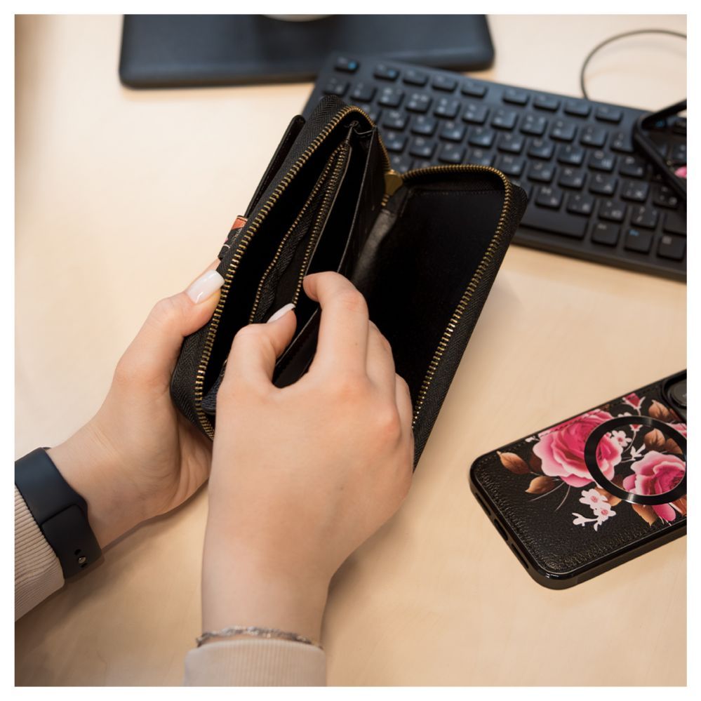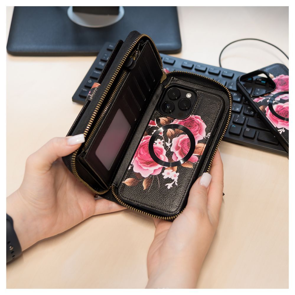 Back panel cover Evelatus Apple iPhone 15 Pro Max Leather Case Zipper Design Flower Black