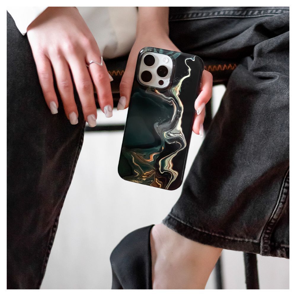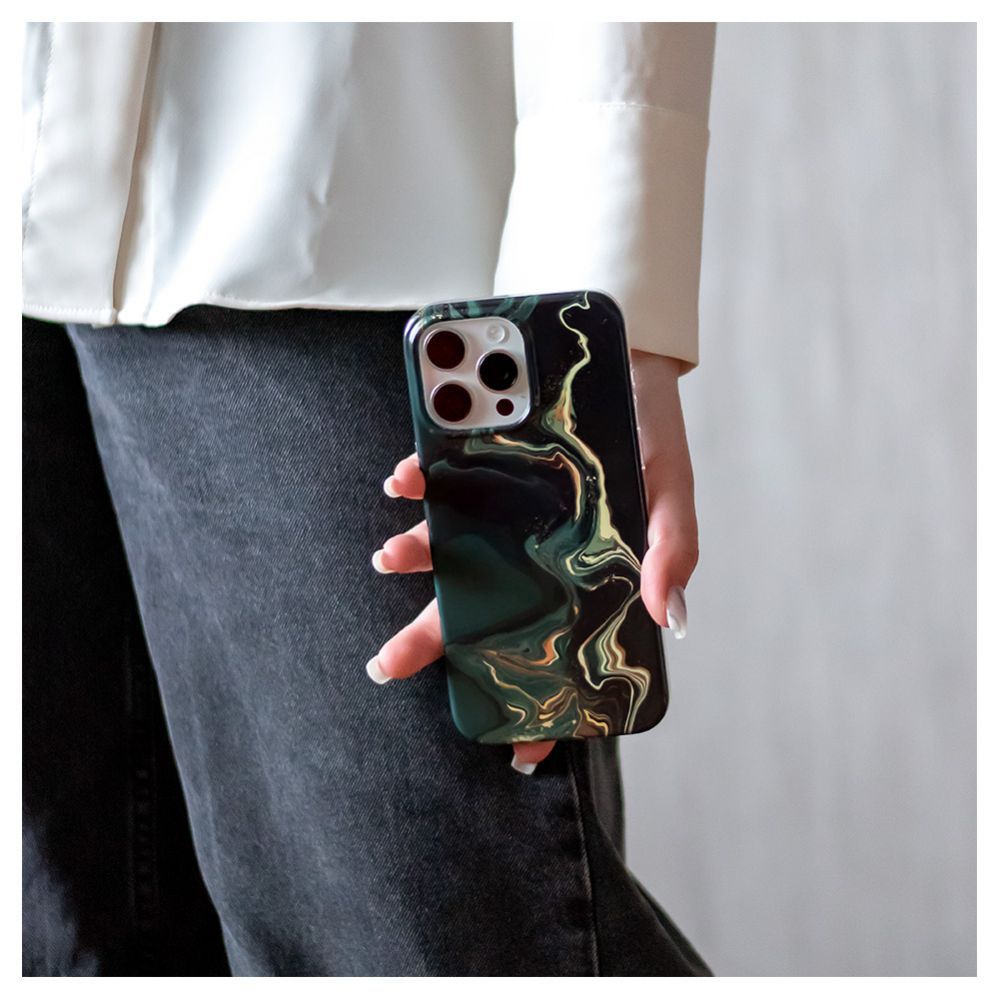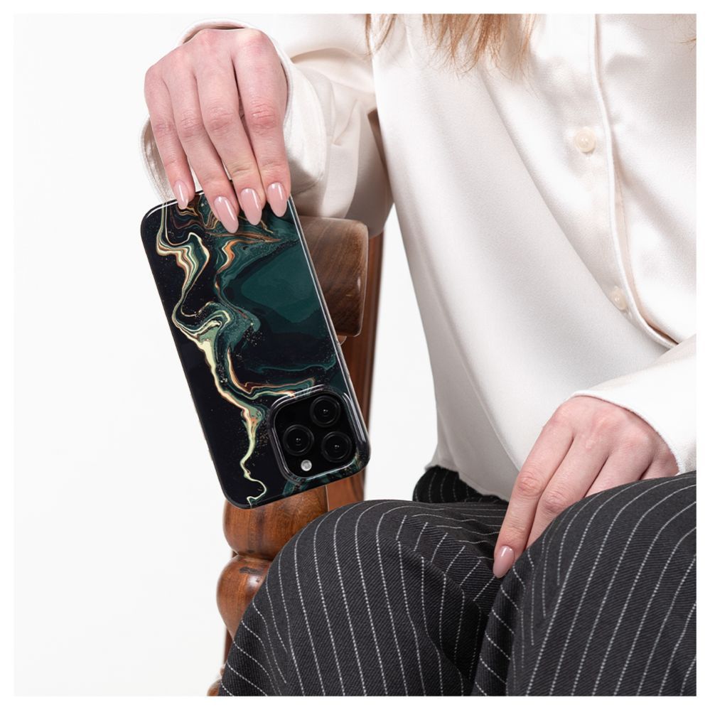 Back panel cover Evelatus Apple iPhone 15 Pro PC Customized Print Design Marble Dark Green