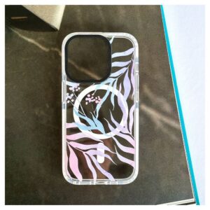 Introducing the original Evelatus hybrid protective case, designed with a built-in magnet for seamless Apple MagSafe compatibility. Crafted from a durable blend of materials, it features a tough Polycarbonate (PC) backplate and shock-absorbing TPU edges. This combination offers robust protection while showcasing a high-quality artistic print. The design includes a raised bezel around the camera, providing extra safety for your lenses while keeping the phone stylish.