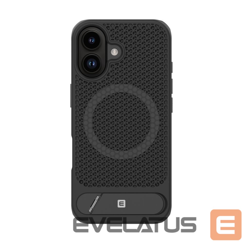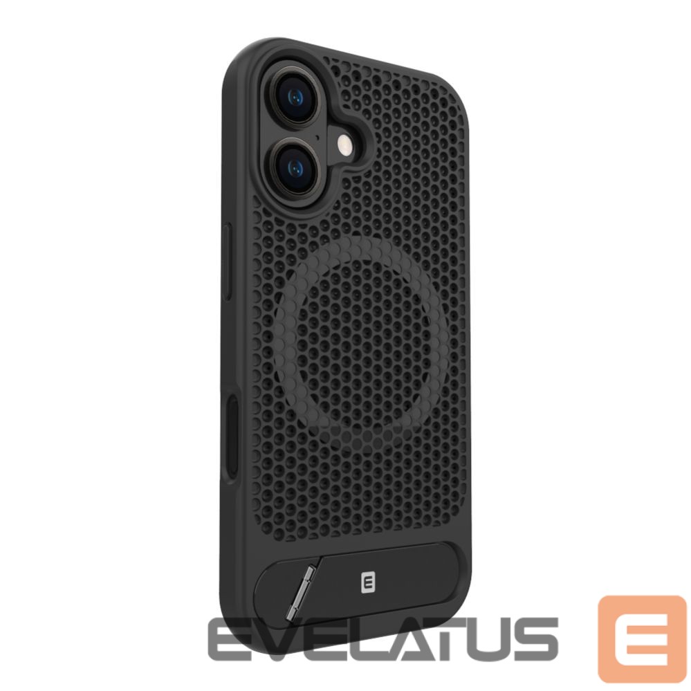 Introducing the original Evelatus Premium hard case, engineered for superior functionality and protection. This case features a unique perforated design that promotes airflow to keep your device cool while enhancing grip. Equipped with a built-in magnet for MagSafe accessories and a durable metal kickstand, this case combines modern utility with signature Evelatus quality.