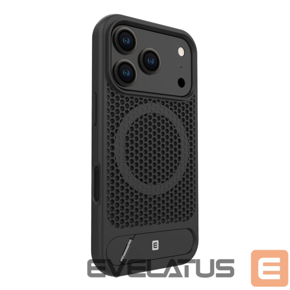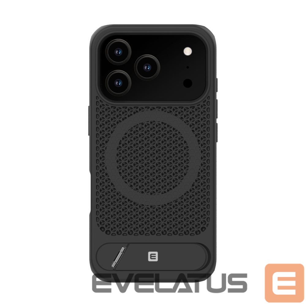 Introducing the original Evelatus Premium hard case, engineered for superior functionality and protection. This case features a unique perforated design that promotes airflow to keep your device cool while enhancing grip. Equipped with a built-in magnet for MagSafe accessories and a durable metal kickstand, this case combines modern utility with signature Evelatus quality.