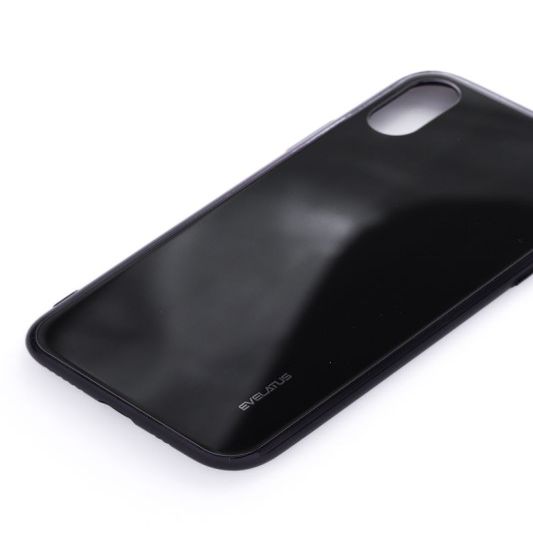 Back panel cover Evelatus Apple iPhone X/XS Water Ripple Full Color Electroplating Tempered Glass Black