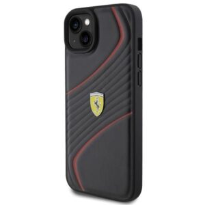 Back panel cover Ferrari Ferrari Twist Metal Logo case for iPhone 15 Plus – black