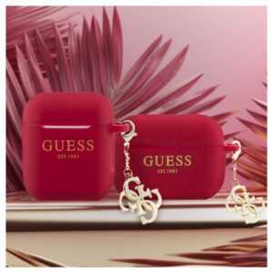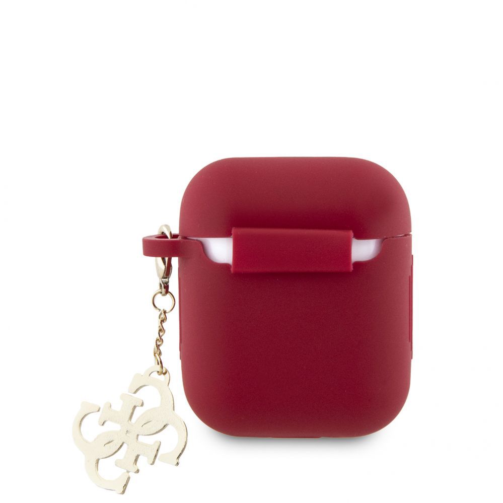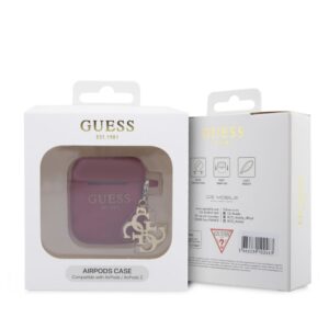 Back panel cover Guess Apple Airpods 1/2 Case Silicone Classic Logo Gold With 4G Charm Magenta
