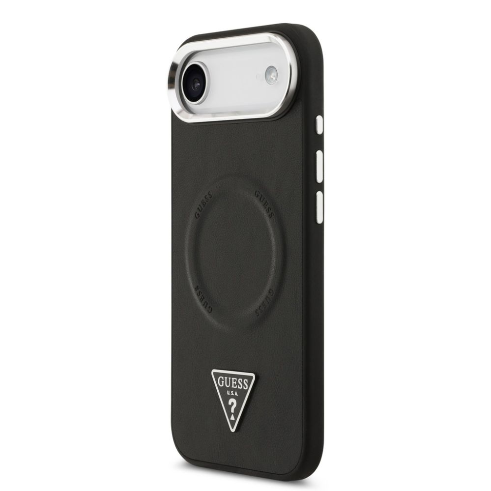 Back panel cover Guess Apple iPhone Air PU Leather Triangle Logo MagSafe Case Black