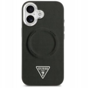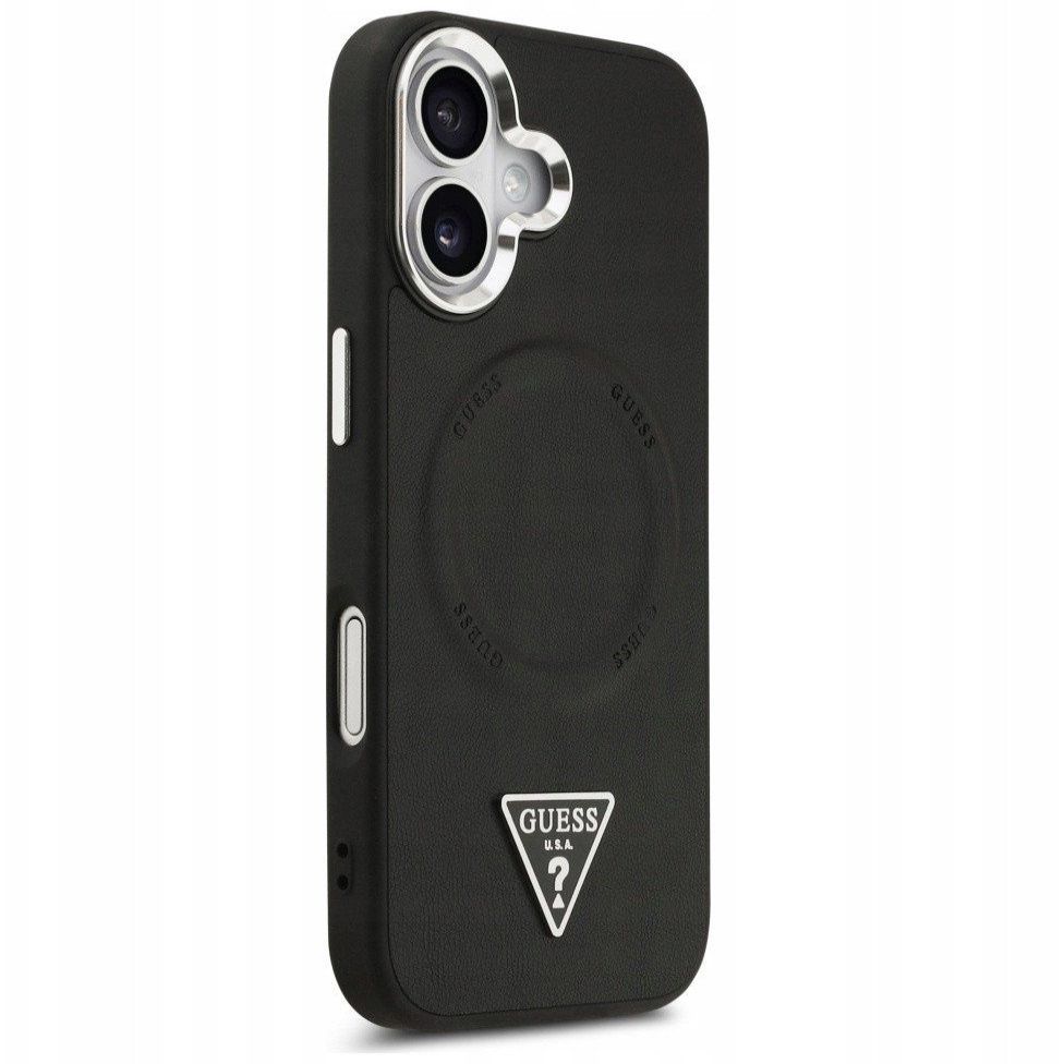 Back panel cover Guess Apple iPhone 17 PU Leather Triangle Logo MagSafe Case Black