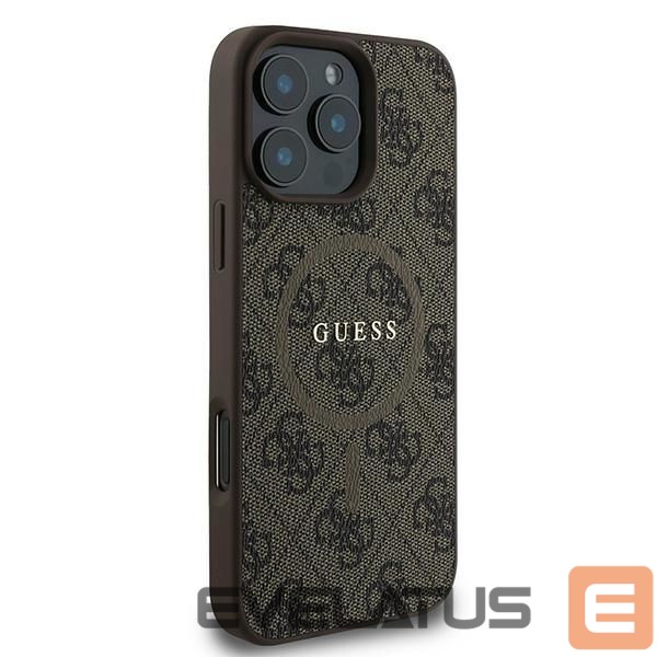 Back panel cover Guess Guess 4G Ring Classic Logo MagSafe iPhone 16 Pro Case – Brown