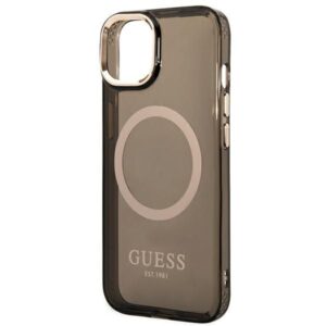 The case will perfectly emphasize the unique design of your iPhone, it has been decorated with golden elements such as the frame around the lenses, buttons and the Guess logo. The case features a magnetic ring compatible with the MagSafe wireless charger for quick and easy charging. The magnetic ring fits perfectly with the color of the cover.
