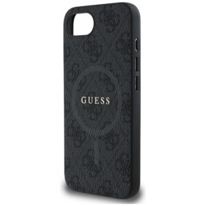 Guess PU Leather 4G Colored Ring Case with MagSafe for iPhone 16e – Black