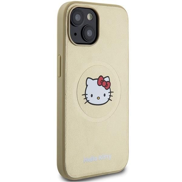 Back panel cover Hello Kitty Hello Kitty Leather Kitty Head MagSafe case for iPhone 15 – gold