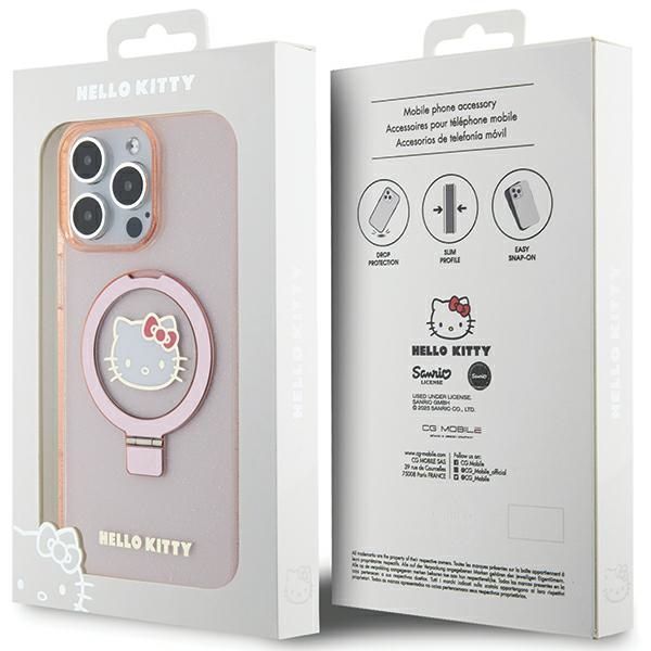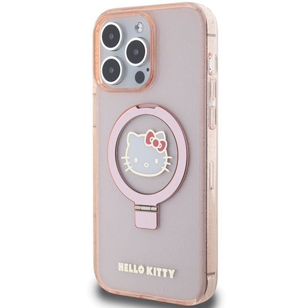 Back panel cover Hello Kitty Hello Kitty Ring Stand Glitter Electrop Logo MagSafe Case for iPhone 15 Pro Max – Pink