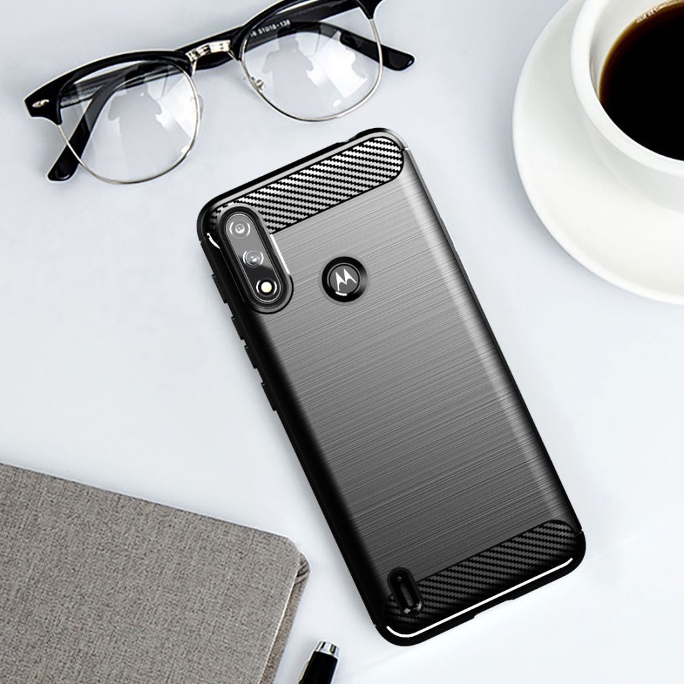 Back panel cover Hurtel Carbon Case Flexible Cover Sleeve Motorola Moto E7i Power black