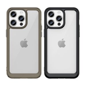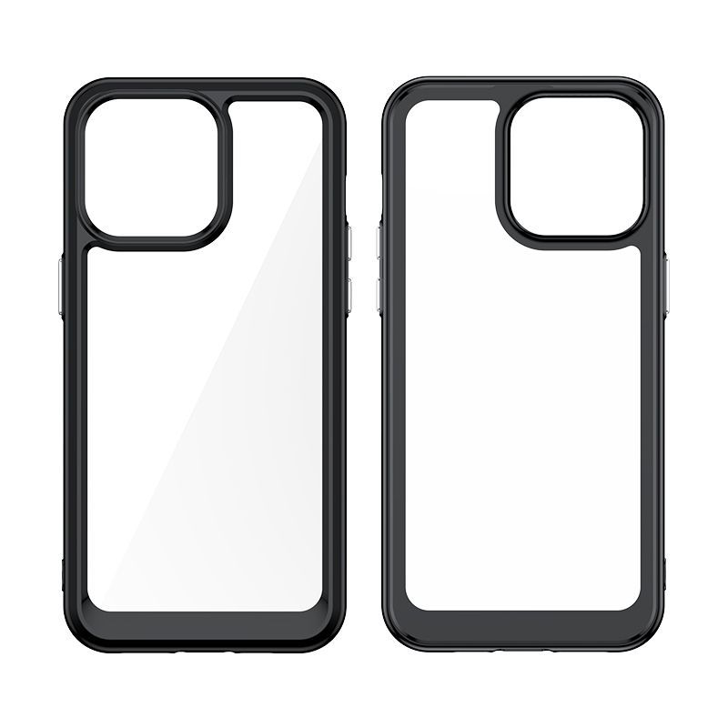 - Hybrid case with a rigid back and a flexible frame.
