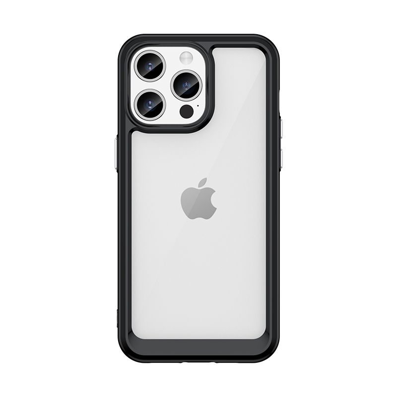 Reinforced iPhone 15 Pro case from the Outer Space Case series with a black gel frame
