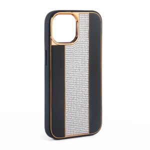 Back panel cover iLike Apple iPhone 15 Pro Diamonds and Leather Case Black
