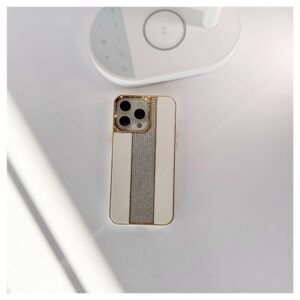 Back panel cover iLike Apple iPhone 15 Pro Diamonds and Leather Case White