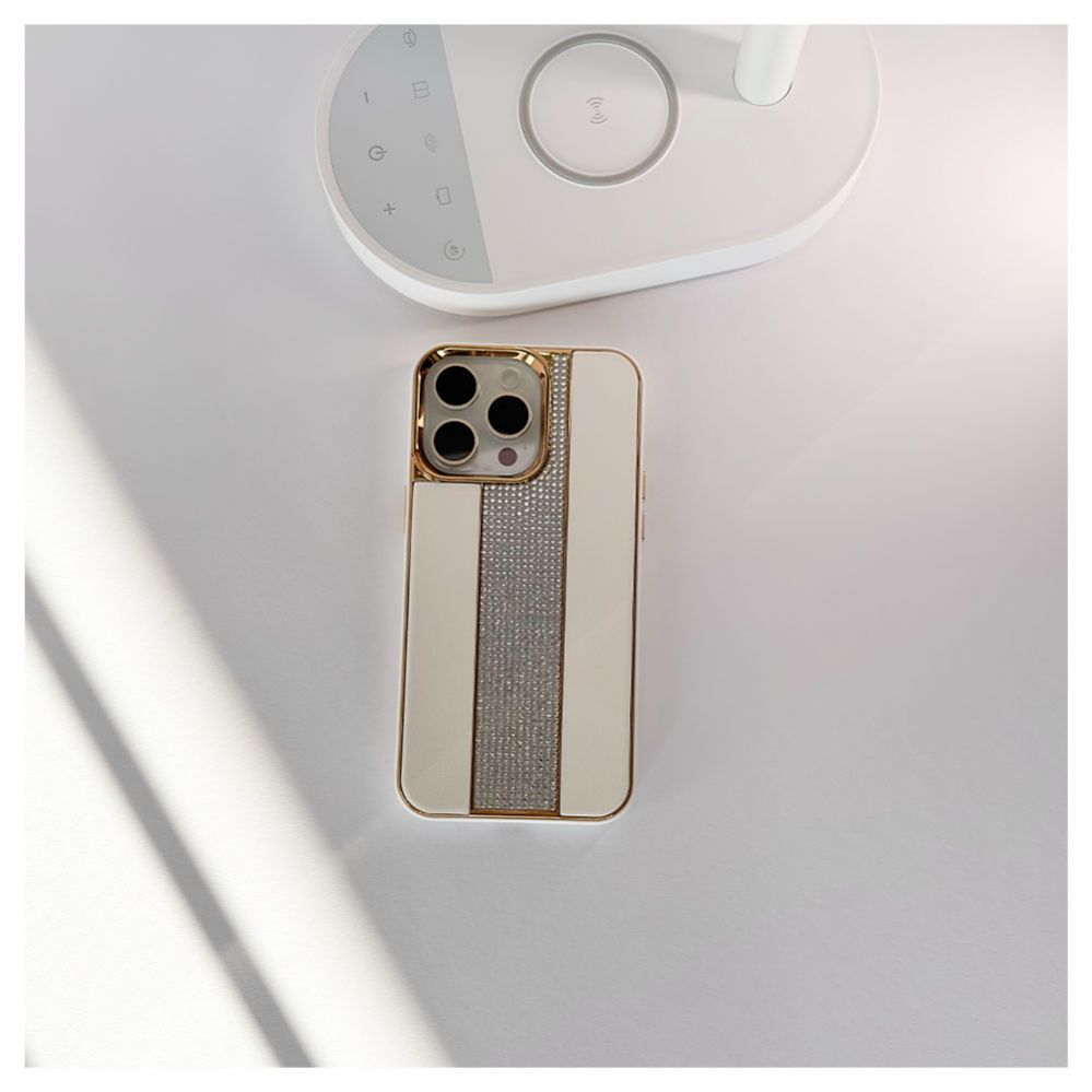 Back panel cover iLike Apple iPhone 15 Pro Max Diamonds and Leather Case White