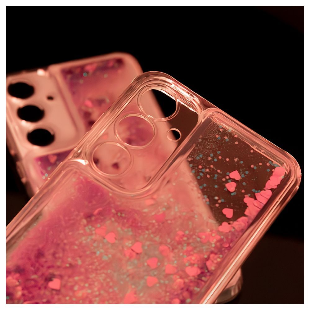 This case is made from high-quality, soft TPU (Thermoplastic Polyurethane) material, which is pleasant to the touch and provides a comfortable, non-slip grip. The transparent edges allow the device’s original design to stand out, while the integrated compartment on the back with **floating liquid glitter** adds a dynamic and playful accent. The flexible nature of the case not only makes it easy to install but also ensures it fits snugly onto the device, maintaining its slim profile.
