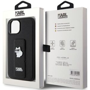 Back panel cover Karl Lagerfeld Karl Lagerfeld Gripstand Saffiano Choupette Pins case for iPhone 15 – black