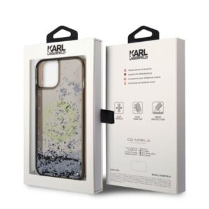 The case is distinguished by liquid glitter particles that shimmer in the light and change their arrangement when the angle of inclination changes. In addition to visual effects, the classic transparent case is decorated with the logo of a famous designer.