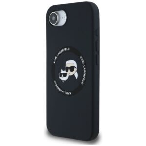Karl Lagerfeld Liquid Silicone Karl & Choupette Heads Case with MagSafe for iPhone 16e – Black