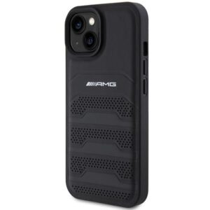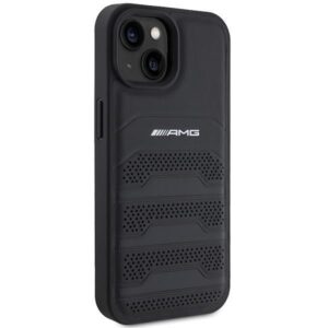 Back panel cover Mercedes-Benz AMG Leather Debossed Lines case for iPhone 15 Plus – black