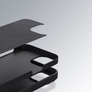 The accessory has integrated buttons, precise cutouts for ports and raised edges around the screen and camera lens.